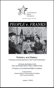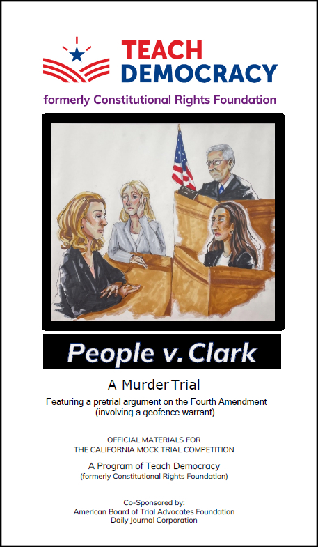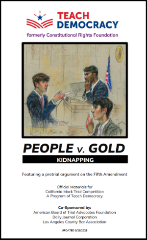 Mock Trial s take students to the heart of the justice system. Students acquire critical-thinking skills and an in-depth understanding of our judicial process as they study a hypothetical case, conduct legal research, and role play the trial. Each Mock Trial packet includes a hypothetical case, witness statements, legal authorities, trial instructions, and procedural guidelines. It also includes a pretrial motion, designed to deepen student understanding of constitutional issues related to criminal trials.